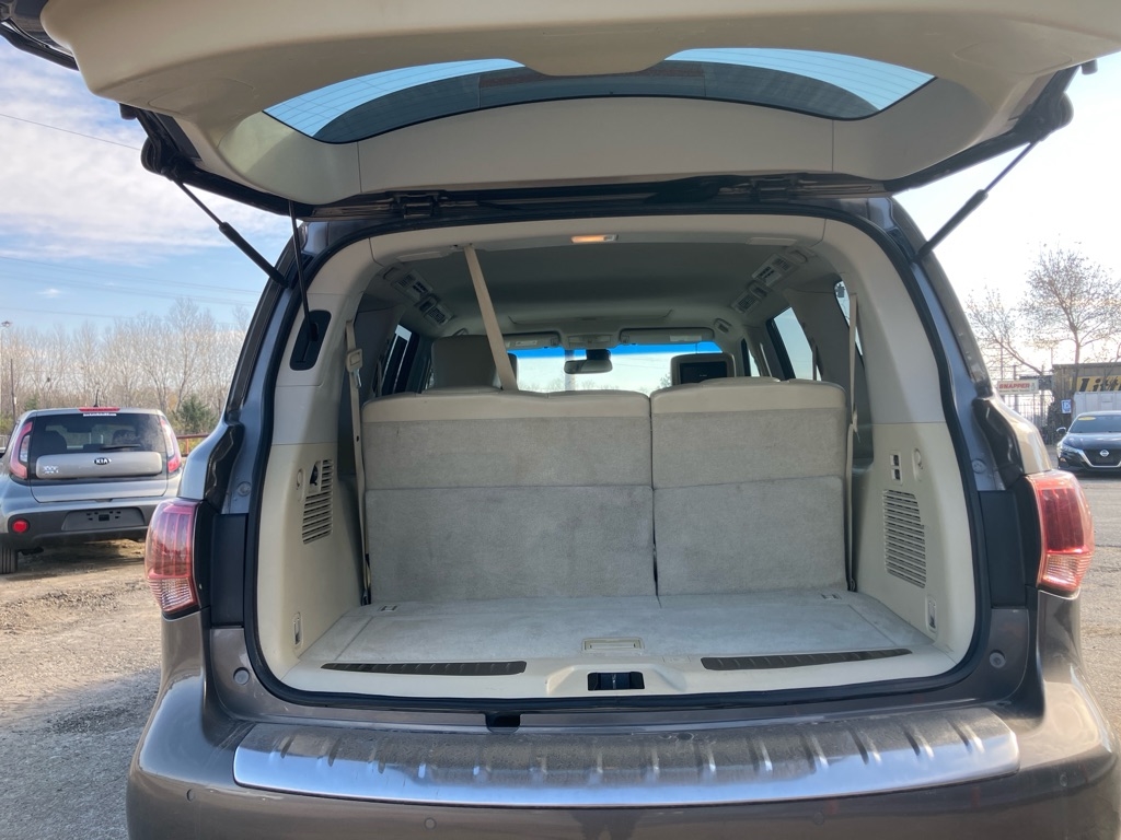 Step into luxury and style with this sleek SILVER 2015 Infiniti QX80! With its spacious interior, powerful engine, and smooth ride, this SUV is perfect for cruising around town or embarking on a road trip adventure. The classy silver exterior is sure to turn heads wherever you go, making you the envy of the neighborhood. Plus, with the Carfax report available for this vehicle, you can rest assured knowing you are getting a top-quality ride.